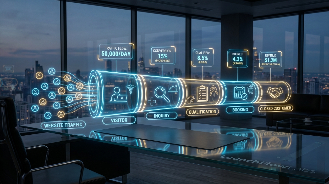 At LaunchFlow Labs, we understand that true growth is methodical. We specialize in transforming chaotic, manual businesses into streamlined, automated powerhouses.